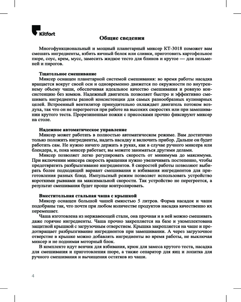 | Kitfort Миксер планетарный КТ-3018-1
