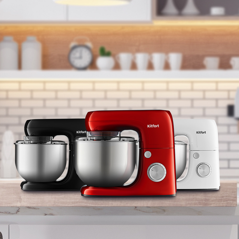 Современный планетарный миксер Kitfort КТ-3018 мощностью 800 Вт поможет вам смешать ингредиенты, взбить яичный белок или сливки, приготовить картофельное пюре, соус, мусс, замесить жидкое тесто для блинов и крутое — для пельменей и пирогов.