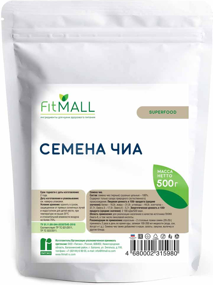 💳 Оплатить за товар можно при получении 🇰🇿 Есть бесплатная доставка по Казахстану от 1 дня 🎁 Копите бонусы с каждой покупки Серия: FitMall Семена чиа — зерна, полученные в результате созревания растения чиа, родиной которого является Мексика. Чиа относится к виду травянистых растений семейства шалфеевых. Семена овальной формы, маленькие, диаметром около 1 мм. Поверхность у них гладкая с рельефным рисунком. Семена чиа содержат большое количество витаминов, микроэлементов и макроэлементов, отличаются повышенным содержанием кальция, клетчатки, белка и омега-3 полиненасыщенных жирных кислот. |