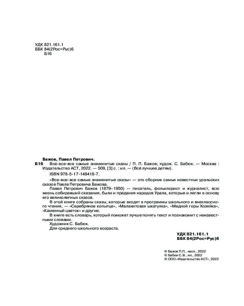 💳 Оплатить за товар можно при получении 🇰🇿 Есть бесплатная доставка по Казахстану 🎁 Копите бонусы с каждой покупки Серия: Всё лучшее детям «Все-все-все самые знаменитые сказы» — это сборник самых известных уральских сказов Павла Петровича Бажова. |