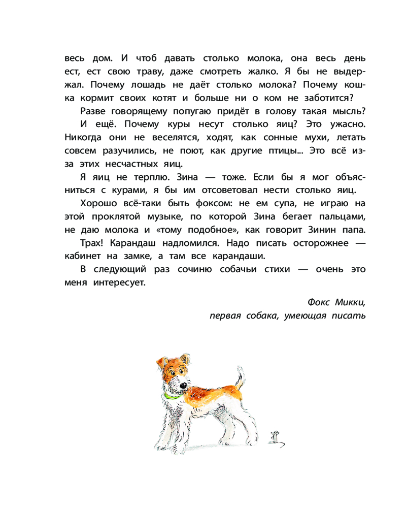 «Дневник фокса Микки» расскажет о симпатичном пёсике, который записывает всё, что происходит с ним и его обожаемой хозяйкой девочкой Зиной. А ещё смышлёный пёс сочиняет стихи!