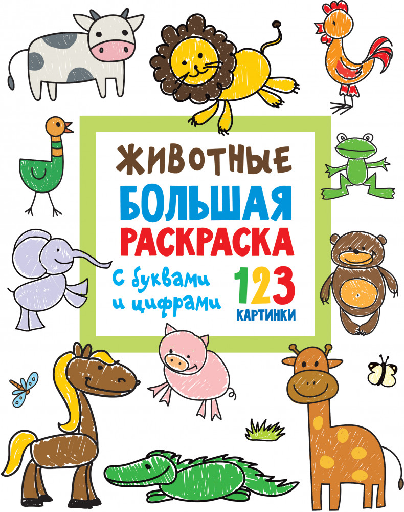 Животные. Большая раскраска с буквами и цифрами-20% +25