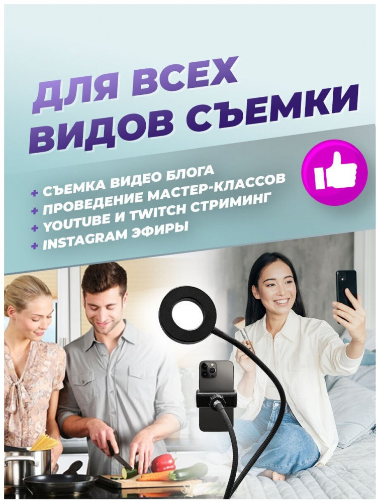 Ritmix Лампа кольцевая RRL-260В данный момент этот товар отсутствует в продаже. Возможно, у нас найдется аналогичный или похожий товар здесь. Кольцевая лампа RRL-260 предназначена для равномерного освещения при фото или видеосъемке. Регулируемая яркость и цветовая температура позволяют подобрать лучшие условия для съемки. Кольцевая лампа оборудована держателем для мобильного телефона на гнущейся ножке и позволяет зафиксировать его в любом положении. |