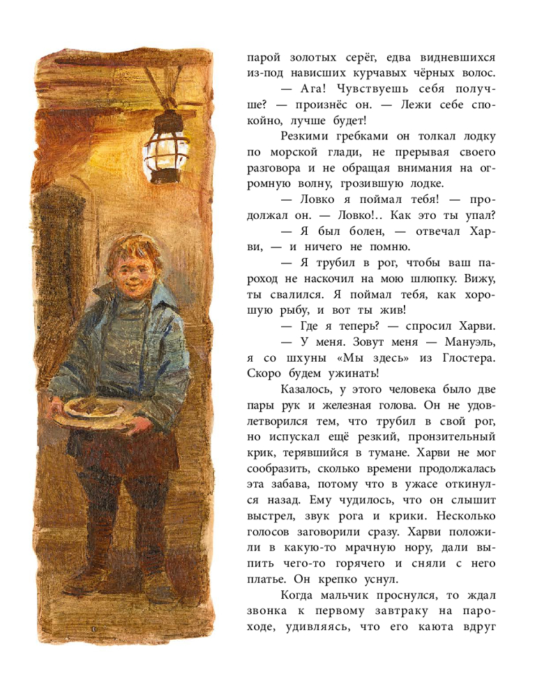 💳 Оплатить за товар можно при получении 🇰🇿 Есть бесплатная доставка по Казахстану от 1 дня 🎁 Копите бонусы с каждой покупки Серия: Детская художественная литература Еще недавно пятнадцатилетний сын миллионера Харви Чейни скучал в гостиной большого парохода. И вот уже он чинит паруса, драит шлюпки и натирает солью блестящие бока трески, пойманной собственными руками. Если бы не моряки со шхуны «Мы здесь», вероятно, Харви стал бы совсем другим человеком. Но как мальчик оказался на скромной рыбацкой шхуне? Уж точно не ради жалованья в десять с половиной долларов в месяц! |