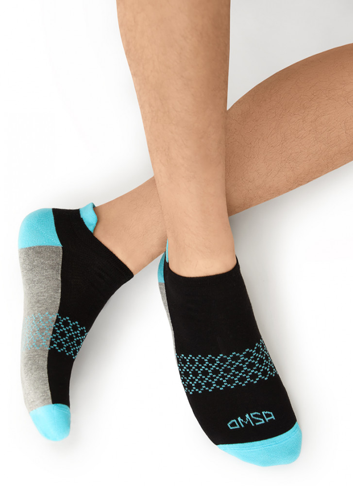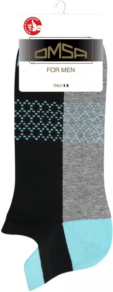 Мужские укороченные носки OMSA из хлопка. Высококачественный хлопок в составе отлично пропускает воздух и впитывает влагу, обеспечивая сбалансированный воздухообмен. Добавление полиамида и эластана способствует увеличению износостойкости и прочности. Удобная резинка обеспечивает превосходное облегание, а кеттельный (плоский) шов на мыске создает дополнительный комфорт. Идеально подходят для создания как спортивных, так и повседневных образов. Отлично ощущаются на ноге и эффектно смотрятся благодаря трендовому дизайну в стиле color blocking.