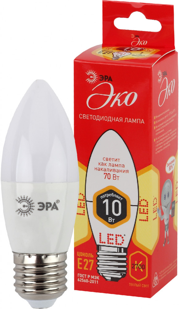 Эра Лампа светодиодная Эра B35-10W-827-E27+5