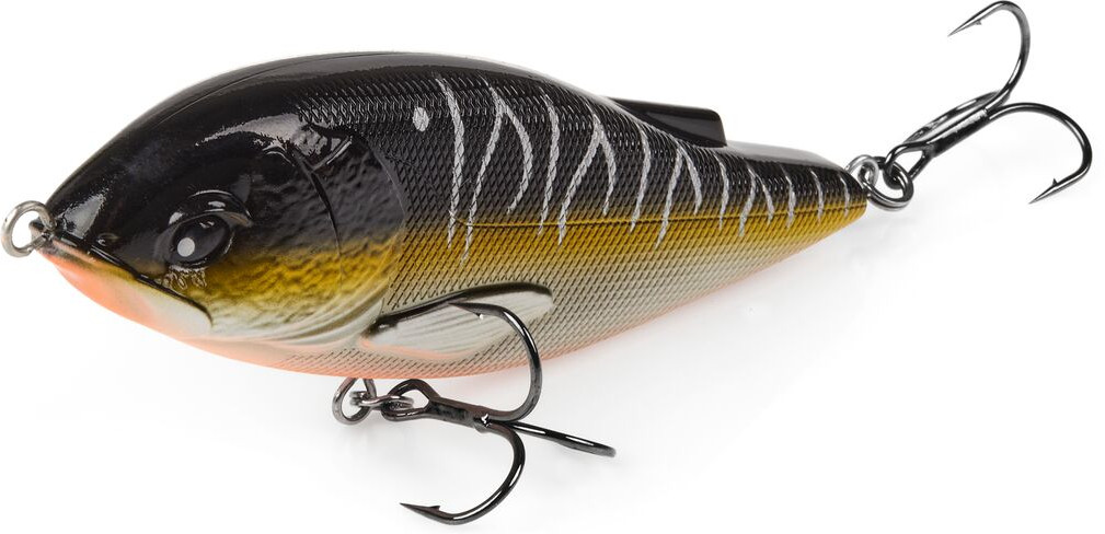 «BBS Arrow Jerk» — серия тонущих и плавающих безопасных приманок. Истинный виртуоз из большой семьи приманок, разработанных для ловли крупной хищной рыбы. Воблер имеет очень своеобразную игру, поэтому после покупки лучше всего попробовать его на мелководье, чтобы визуально подобрать проводку, силу рывков, длительность пауз. В процессе ловли следите, чтобы на тройниках не оставалась трава или любой другой мусор, это сильно влияет на интенсивность игры. Наиболее полно джерк раскрывает потенциал на ритмичных, коротких рывках. Он начинает двигаться по плавной, извилистой траектории, как подобает глайдерам. Активная рыба предпочитает быстрые проводки, а в холодное время года скорость анимации можно снизить. Влево — вправо, влево — вправо: такой извилистый танец исполняет «Arrow Jerk», который доведет любую хищную рыбу до страстной поклевки! Прочный пластик, стойкое покрытие не боятся щучьих зубов. Мощные и острые тройники помогут не упустить крупный трофей.
