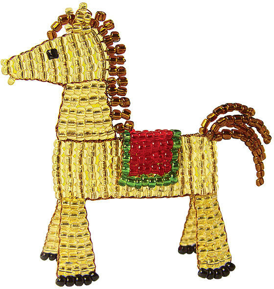Издревле славянские народы делали обереги в виде фигурок лошадок и носили их при себе. Деревянные лошадки были любимыми игрушками. Люди, рожденные в год Лошади, обладают яркой индивидуальностью, энергичны, веселы, любят зрелища, умеют и могут управлять людьми. К основным качествам знака относятся стремление к гармонии и совершенствованию. Сплетите свою золотую лошадку из переливающегося бисера и она станет замечательным талисманом или красивой фигуркой в подарок!