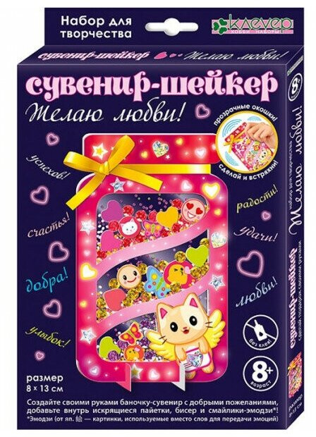 Клевер Набор для изготовления сувенира-шейкера «Желаю любви!»В данный момент этот товар отсутствует в продаже. Возможно, у нас найдется аналогичный или похожий товар здесь. Баночка с пожеланиями — прекрасный сувенир, созданный и декорированный своими руками! Набор «Желаю любви!» поможет маленькому творцу старше 8 лет самому изготовить уникальную баночку-шейкер. Яркая картонная баночка-арт-объект с деталями-эмодзи (картинками для передачи эмоций), переливающимися пайетками и сверкающим бисером в прозрачных окошках украшена фигурными голографическими стикерами. Ребенок наклеит пластик-окошко на половину баночки, разместит детали, пайетки и бисер между перемычками баночки по своему вкусу, наклеит второе пластик-окошко, склеит две детали и, украсив стикерами, поместит на подставку. |