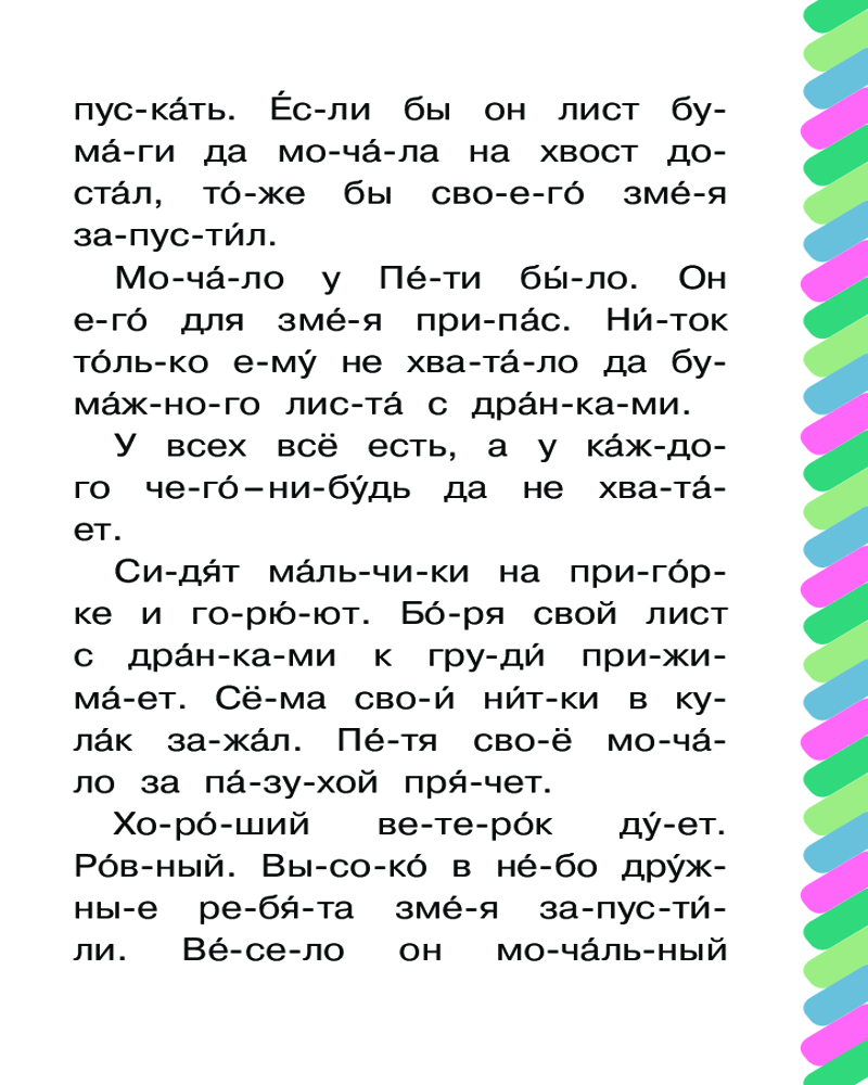 Бумажный змейВ данный момент этот товар отсутствует в продаже. Возможно, у нас найдется аналогичный или похожий товар здесь. Крупный шрифт, разбивка на слоги, ударения, запоминающиеся цветные иллюстрации — в книгах серии «Сам читаю по слогам» есть всё необходимое для формирования у ребенка прочного навыка чтения и стимулирования устойчивого интереса к книге. А еще это прекрасная возможность познакомиться с лучшими произведениями любимых детских авторов, многие из которых стали неотъемлемой частью отечественной культуры. Знать их — признак образованного, культурного человека. |