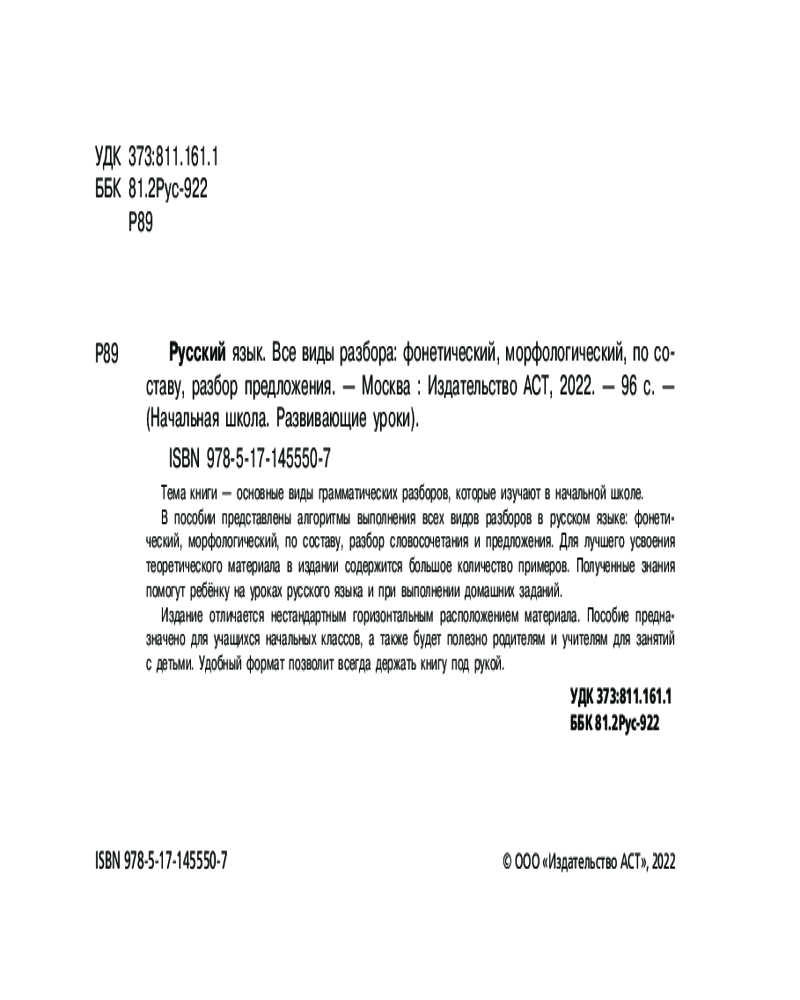 💳 Оплатить за товар можно при получении 🇰🇿 Есть бесплатная доставка по Казахстану 🎁 Копите бонусы с каждой покупки Тема книги — основные виды грамматических разборов, которые изучают в начальной школе. |
