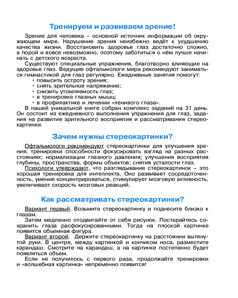 Уникальная книга для тренировки зрения+91