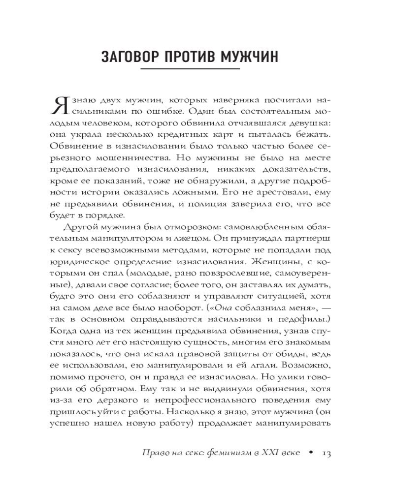 Право на секс. Феминизм в XXI векеВ данный момент этот товар отсутствует в продаже. Возможно, у нас найдется аналогичный или похожий товар здесь. Книга поднимает важные вопросы политики и этики секса, с которыми повсеместно сталкиваются не только женщины, но и мужчины. Что вынуждает женщин говорить «да»? Каким должен быть секс, чтобы на него согласиться? Почему обладающие таким большим психическим, культурным и юридическим значением рамки «согласия» на самом деле не работают? Как секс соотносится с такими понятиями, как раса, класс, инвалидность, национальность, каста? Автор пересматривает политическую критику секса в XXI веке, дополняя собственные оригинальные идеи множеством историй, примеров и фактов. Книга для тех, кто заинтересован темой феминизма, хочет разобраться в сложных вопросах пола и гендера. |