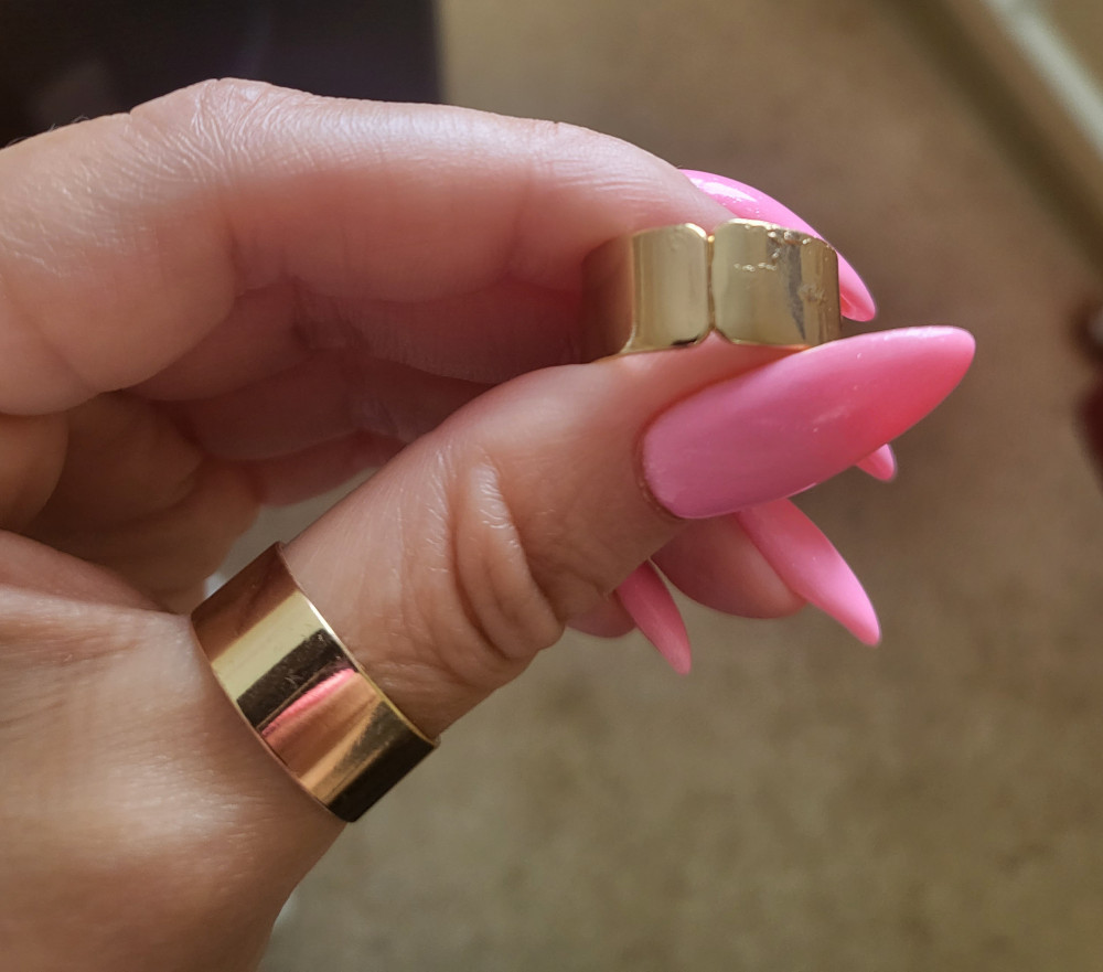Заказывала два раза. Первый: все отлично. Второй: качество широкого кольца про ужасное. Если бы сама пошла за заказом не выкупила бы. На фото на пальце кольцо из первого заказа, в руке держу из второго. Видно плохие качество.
