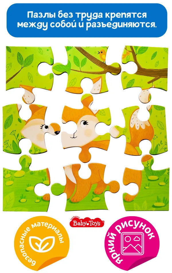 Baby Toys Пазл «Лисичка»-25% +32 крупные пазлы яркие цвета удобная ручка