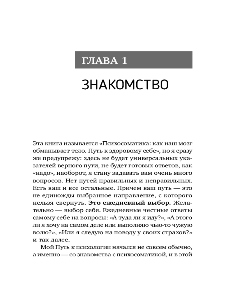 В книге «Психосоматика: как наш мозг обманывает тело. Путь к здоровому себе» автор рассказывает о том, как научиться отслеживать внутренние конфликты, которые могут приводить к болезням. Вы узнаете, какие причины лежат в основе аллергий, ожирения, проблем с ЖКТ, гинекологических заболеваний, зависимостей, панических атак и так далее. Сможете быть здоровым физически и душевно. |