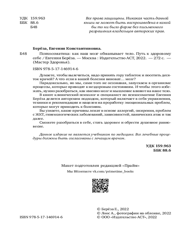 | Психосоматика. Как наш мозг обманывает тело. Путь к здоровому себе Евгения Берёза