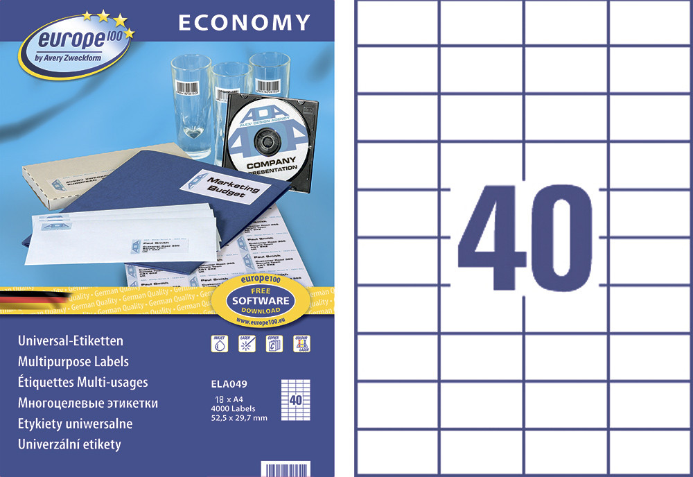 Avery Zweckform Этикетки самоклеящиесяВ данный момент этот товар отсутствует в продаже. Возможно, у нас найдется аналогичный или похожий товар здесь. Серия: Europe 100 Диапазон применения широк: от наклеек на конверты до маркировки на производстве. Совместимы с лазерными и струйными принтерами и многофункциональными устройствами любой марки. Гарантированное качество печати благодаря новой структуре бумаги и технологии, исключающей загрязнение аппаратуры частицами клея. Возможность переклеивания отсутствует. |