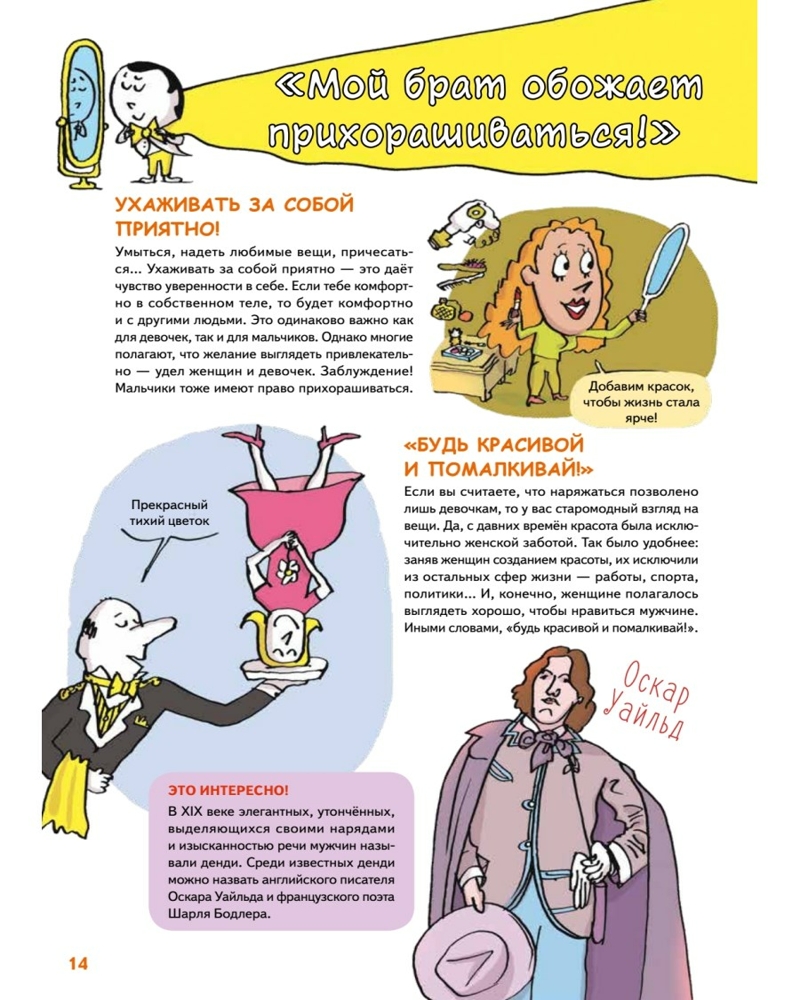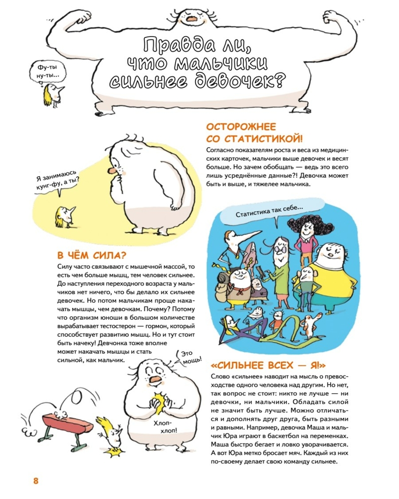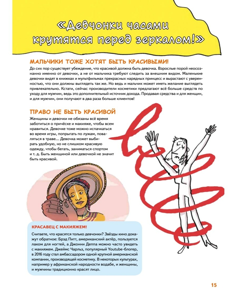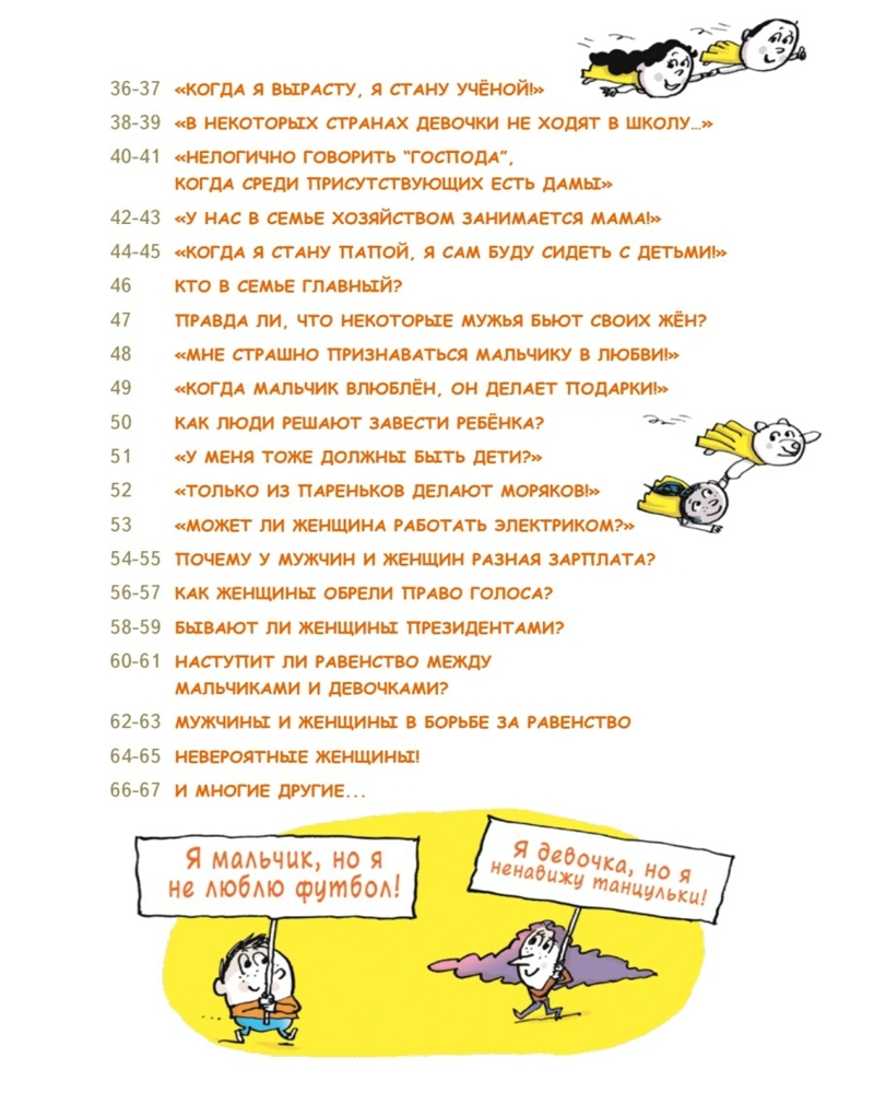 Мальчики VS Девочки. Детские вопросы про стереотипыСандра Лабукари, Стефани Дюваль В данный момент этот товар отсутствует в продаже. Возможно, у нас найдется аналогичный или похожий товар здесь. У вас в семье растёт девочка, которая терпеть не может юбки и розовый цвет? Или мальчик, который любит готовить и выращивать цветы? Возможно, вы переживаете, что такое поведение отличается от общепринятого. Дайте своим детям эту книгу! А лучше прочтите её вместе с ними, чтобы в очередной раз убедиться: выбор одежды и увлечений не должен зависеть от пола. По мнению психологов, с ребёнком можно и нужно говорить на деликатные темы, связанные с изменениями в теле, о создании семьи, правах и личных границах. Реальные дети присылали в редакцию оригинального издания волнующие их вопросы, а эксперты постарались искренне и честно на них ответить. |