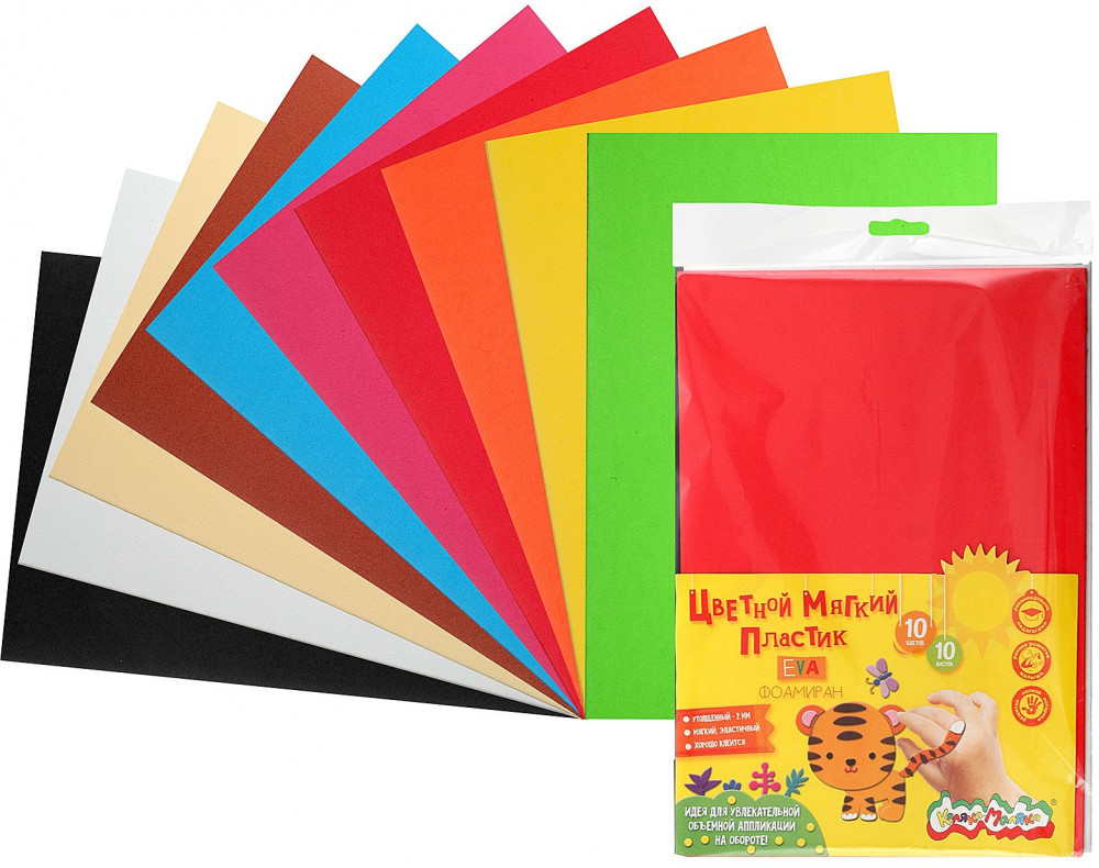 В данный момент этот товар отсутствует в продаже. Возможно, у нас найдется аналогичный или похожий товар здесь. Необычный, мягкий материал для творчества EVA, или как его еще называют, фоамиран – это пластичная пенка, которая позволяет сделать не только аппликации, но и классные объемные поделки. В ассортименте Каляка-Малка есть как однотонный EVA фоамиран, так и с блестками.