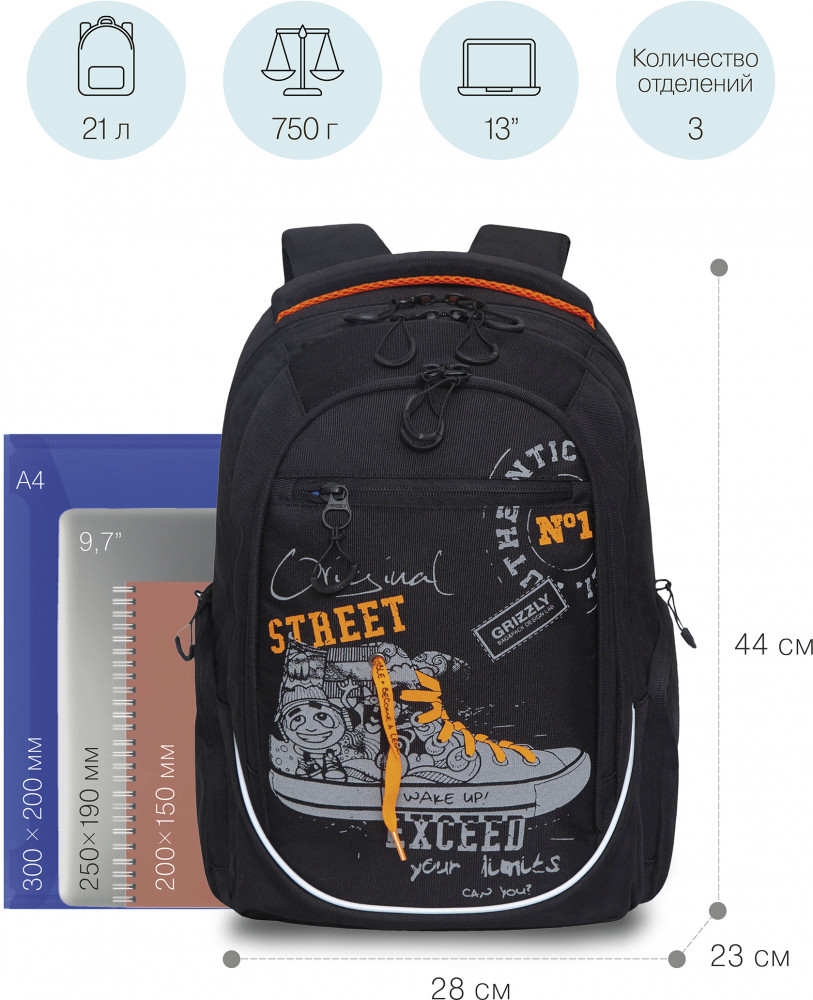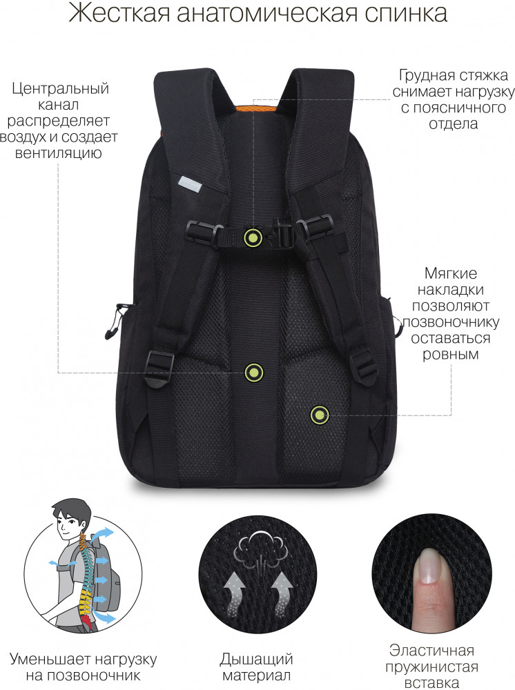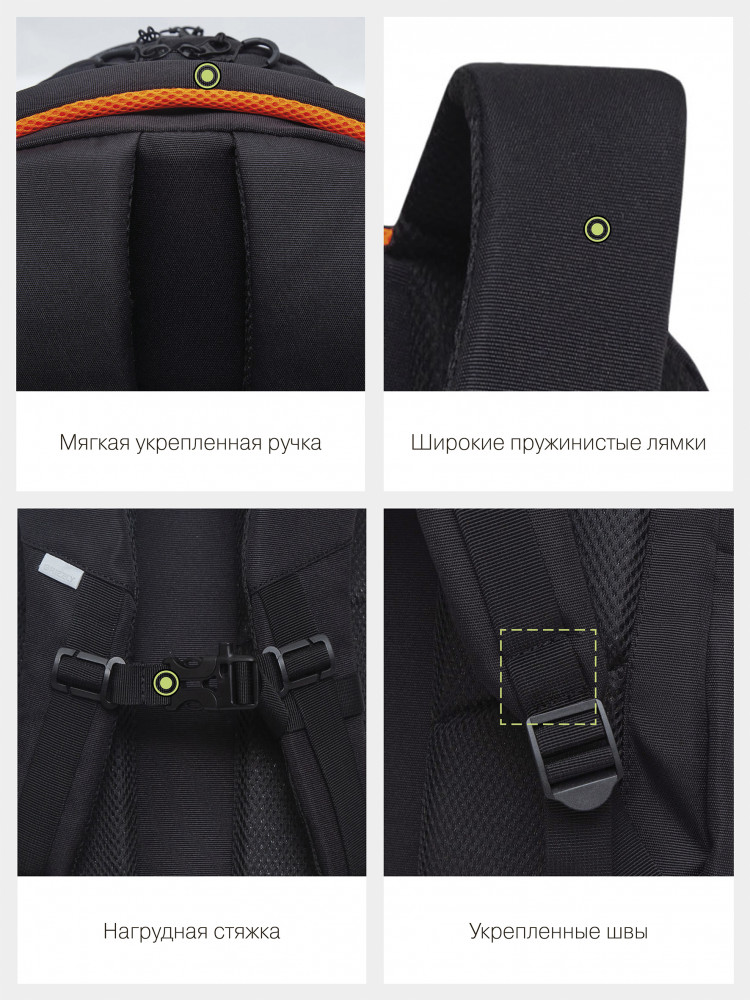Модель объемная — 21 л. Внутри помещается много вещей. Для них предусмотрено 3 отделения и 5 карманов: для ноутбука 13", документов формата А4, канцелярских и других принадлежностей. Снаружи 2 боковых закрытых кармана для зонта и бутылки с водой. У рюкзака твердое дно, анатомические лямки и спинка с поддержкой позвоночника, а также нагрудная стяжка со свистком. Даже при больших нагрузках осанка остается здоровой. Светоотражающие элементы с четырех сторон создают дополнительную безопасность в условиях недостаточной видимости. За счет водо- и грязеотталкивающей пропитки долго остается как новый. Если рюкзак все же чем-то испачкался, рекомендуется ручная стирка в холодной воде.