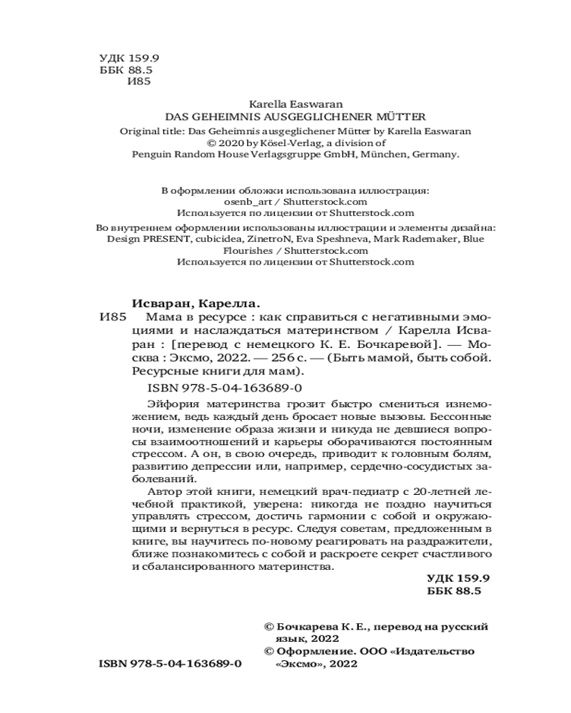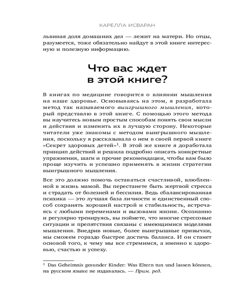 В данный момент этот товар отсутствует в продаже. Возможно, у нас найдется аналогичный или похожий товар здесь. Серия: Быть мамой, быть собой. Ресурсные книги для мам Если постоянные усталость, страх и чувство вины мешают вам заботиться о ребенке и наслаждаться материнством, эта книга для вас. Ее автор, врач-педиатр с более чем 20-летней лечебной практикой и мама двоих детей, не понаслышке знает, как сложно выполнять ежедневные обязанности, когда все валится из рук. Этой книгой она предлагает помощника: методику выигрышного мышления, которая научит управлять стрессом и оставаться в гармонии с собой и окружающими. Как беспокойства и страхи становятся привычкой?