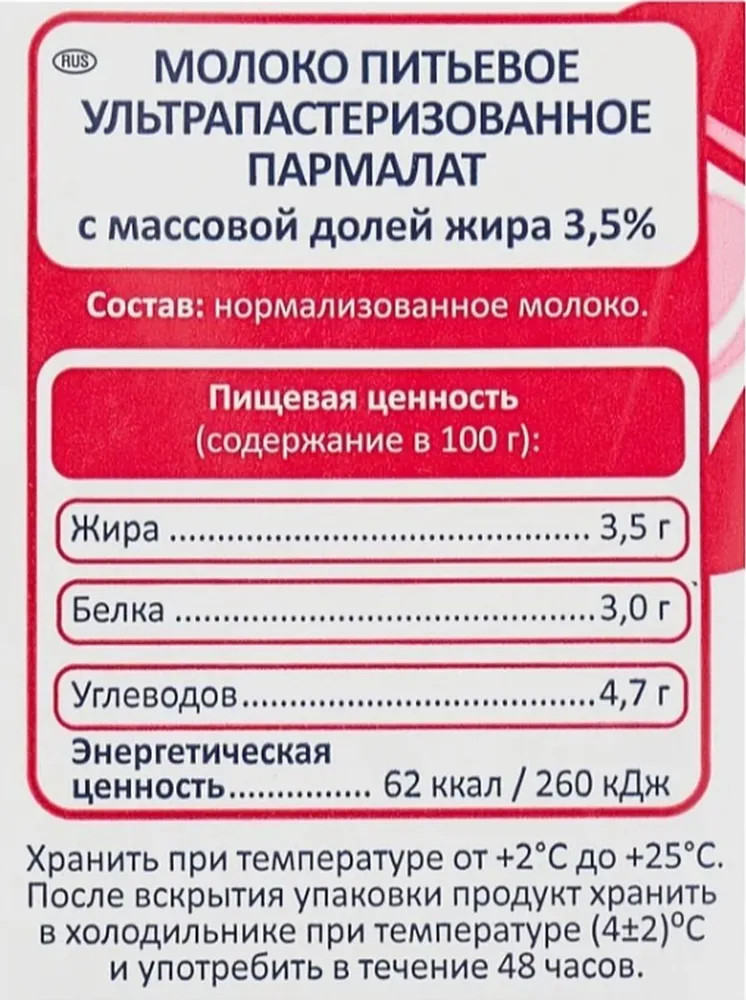 Parmalat Молоко ультрапастеризованное+45 вкус срок годности