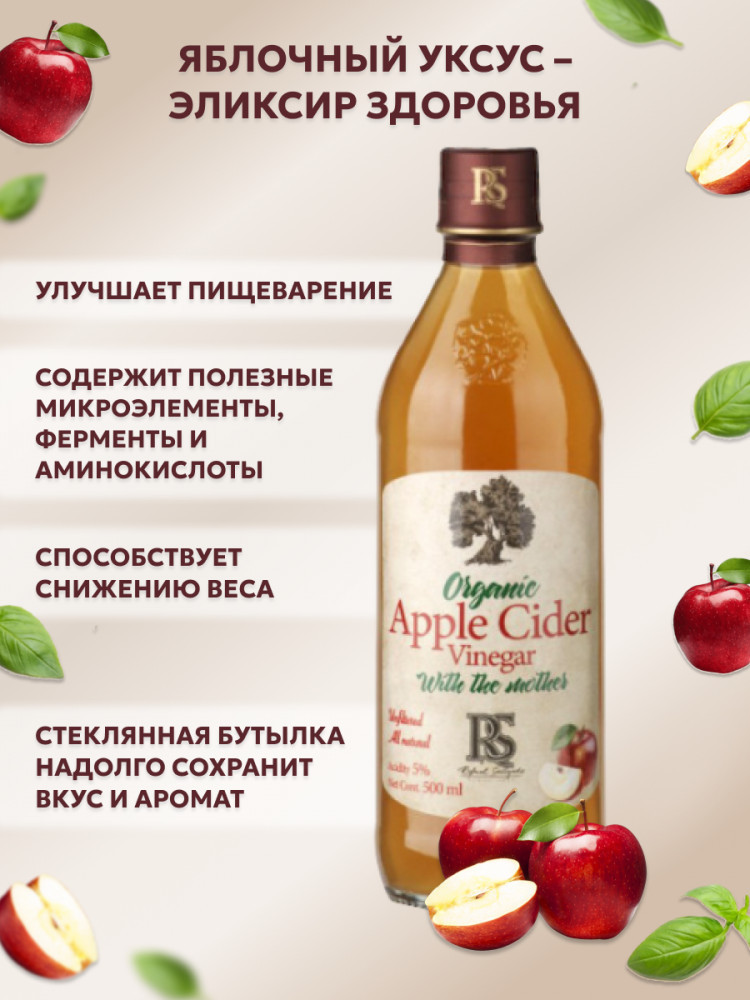 Rafael Salgado Уксус яблочный нефильтрованный натуральный-20% +37 натуральный приятный вкус стеклянная бутылка нефильтрованный