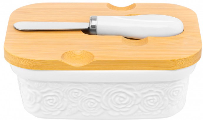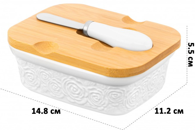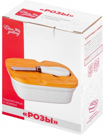 Elan Gallery Паштетница с крышкой «Розы»В данный момент этот товар отсутствует в продаже. Возможно, у нас найдется аналогичный или похожий товар здесь. Серия: Розы Паштетница серии «Розы» с крышкой и ножом поможет эстетично подавать продукты к столу — идеально для завтраков и чаепитий! В набор входит емкость, крышка и нож. Можно использовать в роли масленки или икорницы. При хранении в холодильнике паштеты, икра и сливочное масло не будут впитывать посторонние запахи. Баночка с крышкой сохранит оригинальный запах и насыщенный вкус продуктов. Паштетница выполнена из высококачественного белого фарфора и украшена декоративными рельефными узорами. Фарфоровая посуда отличается от керамики повышенной плотностью. Она не впитывает цвет и запах и не деформируется от влаги, чему может быть подвержена керамическая посуда. Контейнер без крышки можно использовать в СВЧ и ПММ. Бамбуковую крышку нельзя замачивать. Комплект поставляется в стильной картонной упаковке. Набор для сервировки из серии посуды «Розы» сможет стать настоящим украшением кухни или приятным подарком для родных и близких! |