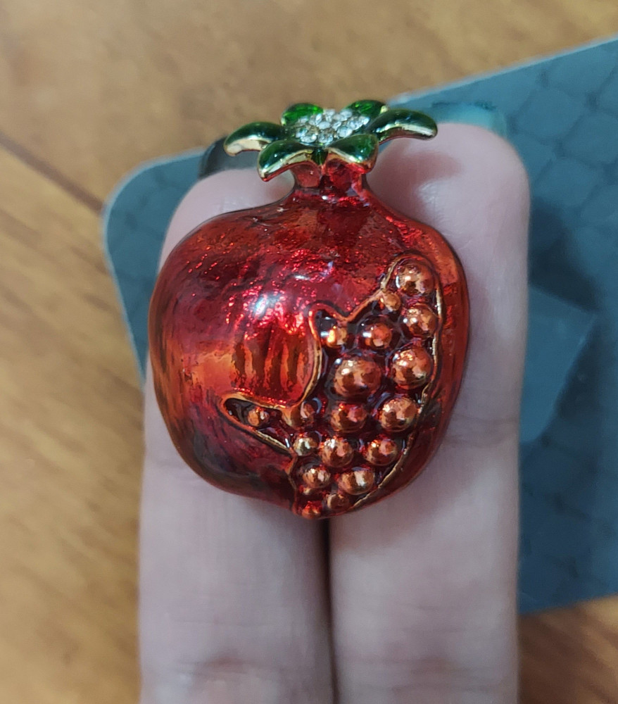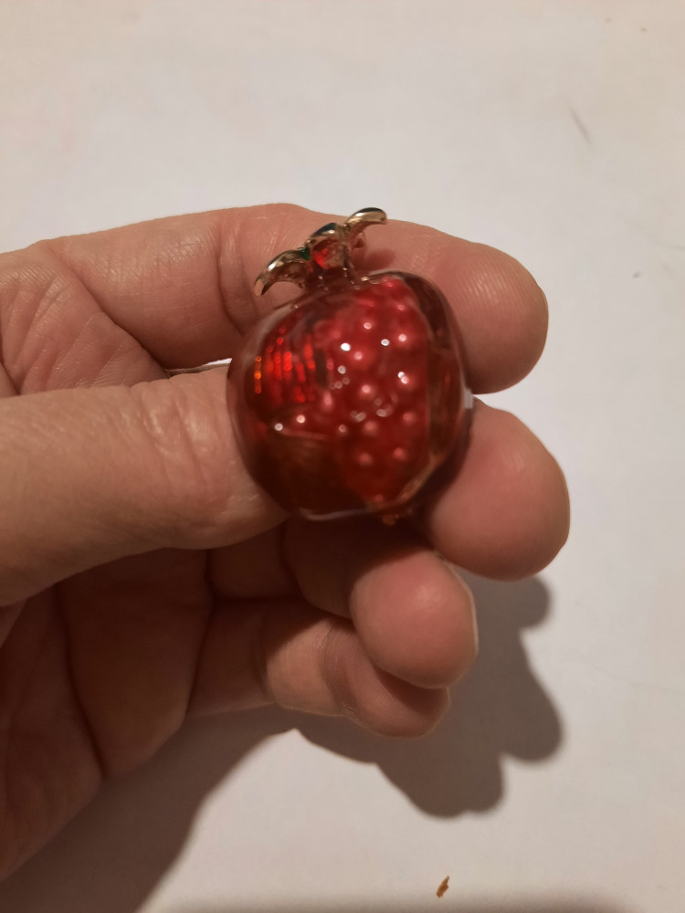 Красивая, сладкая! Очень удачная форма, как половинка полого минигранатика, яркие краски, хороший лак, милая живая асимметрия