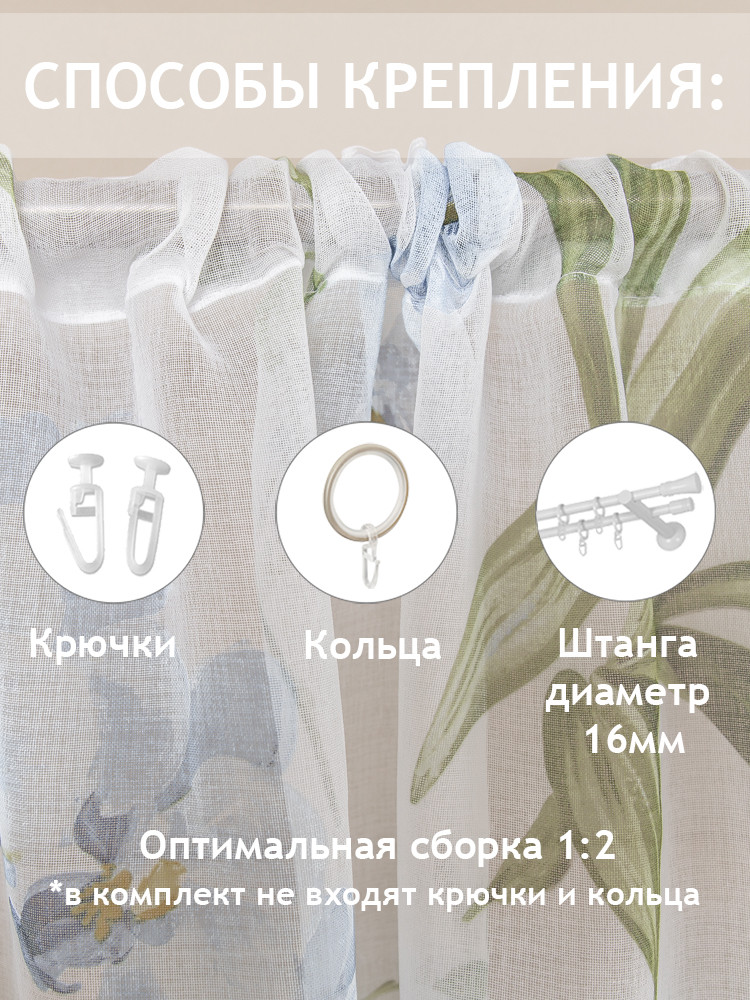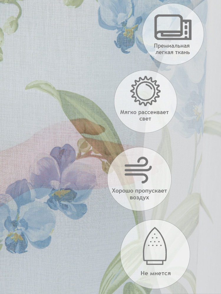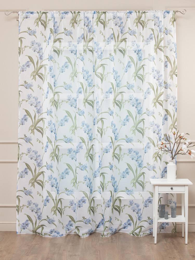 Тюль торговой марки «Amore Mio» изготовлен из ткани, имитирующей натуральный лен. Оригинальная штора с нежным рисунком изготовлена из лёгкой матовой ткани лён-печать. Тенденции оформления дома в натуральных тканях и цветах сейчас особенно актуальны. Изделие на шторной ленте и готово к использованию.