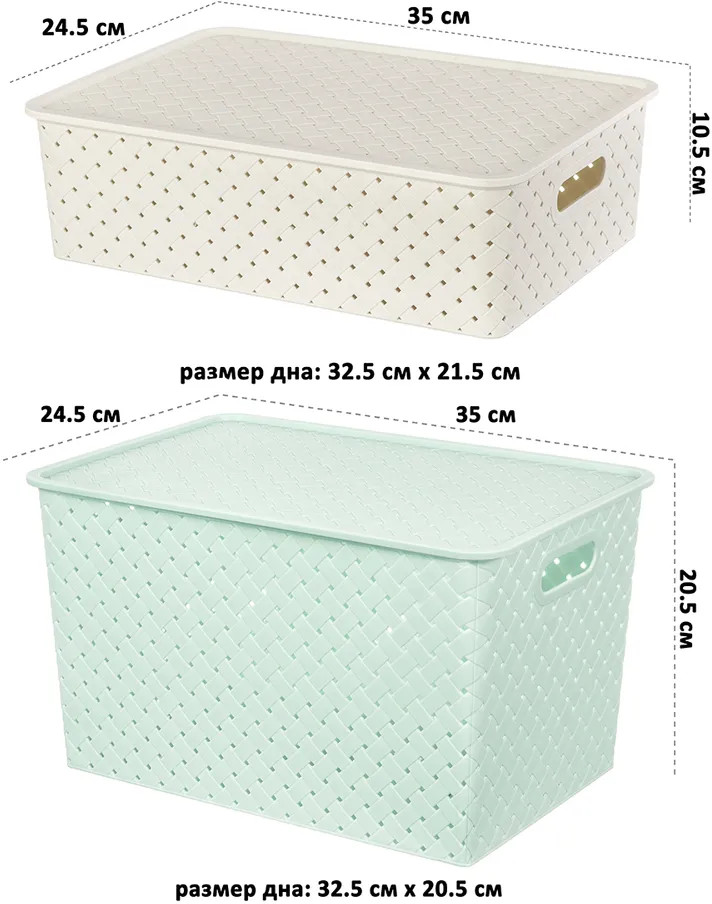 • корзина с крышкой (объем 7,5 литра, 35 × 24,5 × 10,5 см) — 2 шт.;