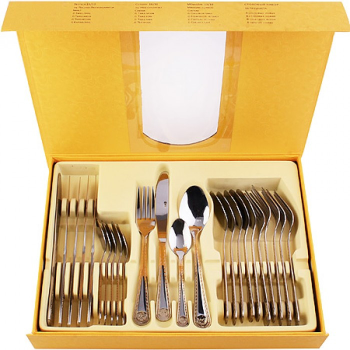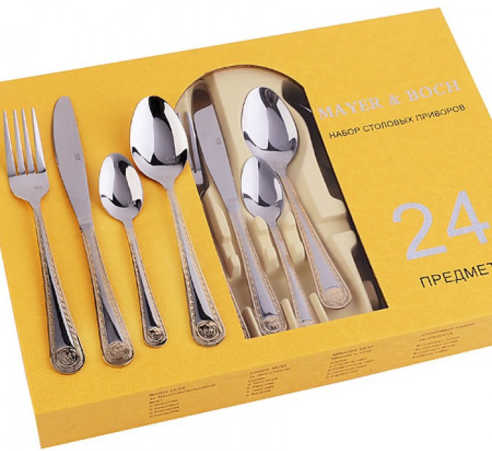 💳 Оплатить за товар можно при получении 🇰🇿 Есть бесплатная доставка по Казахстану от 1 дня 🎁 Копите бонусы с каждой покупки Набор столовых приборов Mayer & Boch на 6 персон выполнен из высококачественной нержавеющей стали, ручки приборов имеют глянцевую полировку и декорированы изящным золотым орнаментом. Набор из 24 предметов включает в себя: 6 столовых ложек, 6 вилок, 6 ножей и 6 чайных ложек. Благодаря качественной полировке, изделия сохраняют прекрасный внешний вид на долгое время. Набор обладает не только оригинальным дизайном, но и практичностью, так как изделия из качественной нержавеющей стали имеют высокую прочность, устойчивость к коррозии, кроме того, нержавеющая сталь экологична, она не меняет вкусовые свойства еды, потому как не вступает в реакцию с ее компонентами. Упакованный в красочную подарочную коробку такой набор безусловно станет прекрасным подарком для любой хозяйки и украсит ваш праздничный стол. Подходит для мытья в посудомоечной машине. |