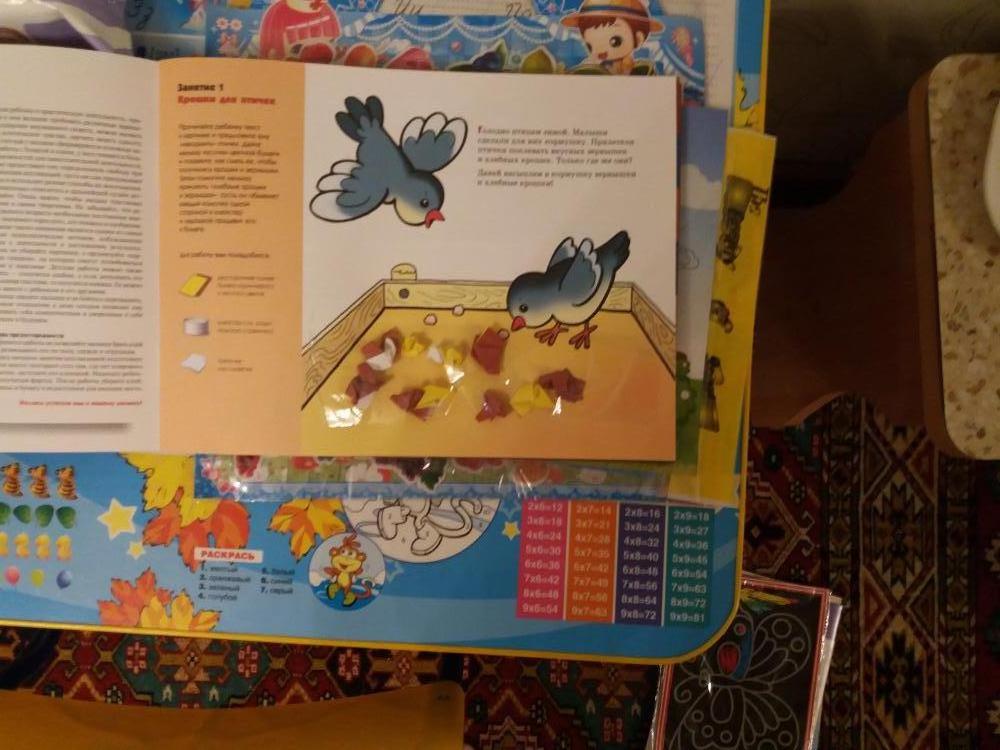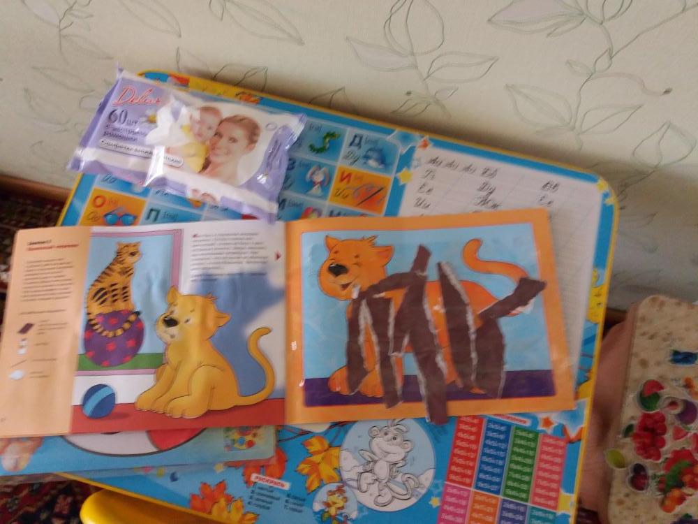 Я влюблена с ребенком в эту серию. Цветная бумага уже дана для аппликации. Я скотчем все листы делаю, чтобы осталась память.