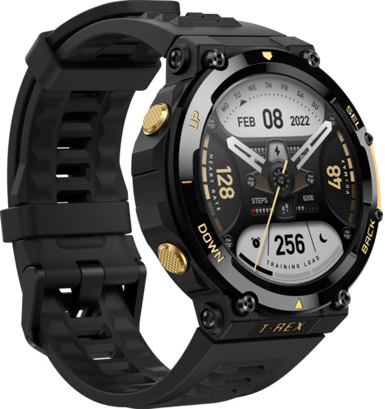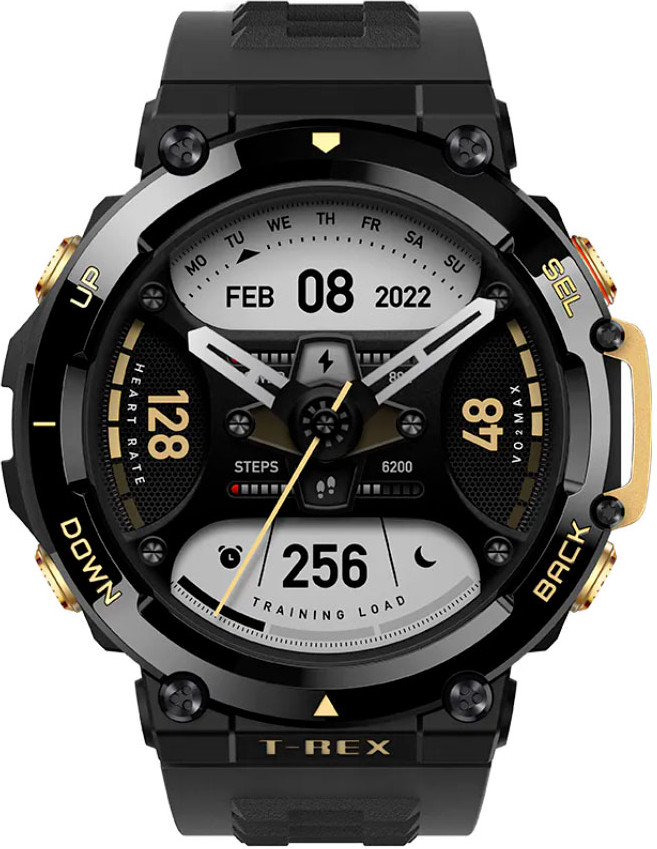 Amazfit T-Rex 2 обладает большим экраном, который облегчает просмотр, жизненно важных для вашего приключения, данных — будь то под солнцем пустыни, городскими фонарями или в походе при свете луны. Матовое покрытие часов и безель с металлическим напылением дополнены силиконовым, не впитывающим пот, ремешком, который сохраняет часы сухими и удобными, пока вы противостоите стихии.