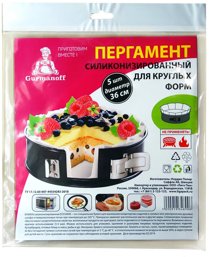 Gurmanoff Пергамент для круглых форм в листах+14 не прилипает удобная форма хорошее качество подходит для выпечки