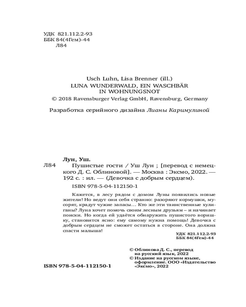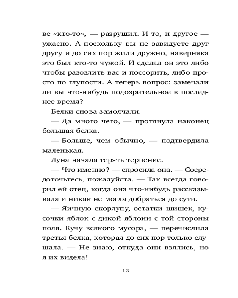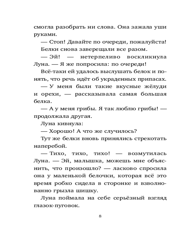 Что же происходит в лесу? Почему белки ссорятся друг с другом? Кто украл их запасы? И кто разорил кормушки оленей и косуль? Кажется, в Зоммервальде появились новые жители, и, прямо скажем, ведут они себя как хулиганы... Но когда Луна находит маленького воришку, то понимает: ему самому нужна помощь! Конечно, она не оставит пушистого малыша в беде! Серия о Луне, девочке с добрым сердцем, учит эмпатии, отзывчивости и помогает поверить в себя. Захватывающие приключения легко читать: лёгкий слог, удобный шрифт, много красивых иллюстраций. Для читателей 7–9 лет. |