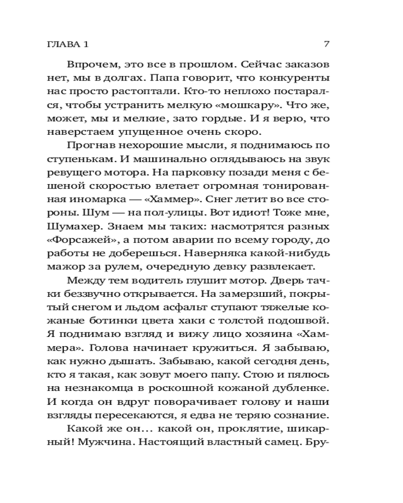 💳 Оплатить за товар можно при получении 🇰🇿 Есть бесплатная доставка по Казахстану от 1 дня 🎁 Копите бонусы с каждой покупки Серия: Близость. Истории о сильных чувствах Нашей семье грозит банкротство. Фирма отца переживает непростые времена, и в любой момент мы можем лишиться всего, что нажили за эти годы. Я не понаслышке знаю, сколько труда и денег отец вложил в свое дело. Поэтому готова пойти на все, лишь бы отец не потерял свою фирму, а с ней — и смысл жизни. |