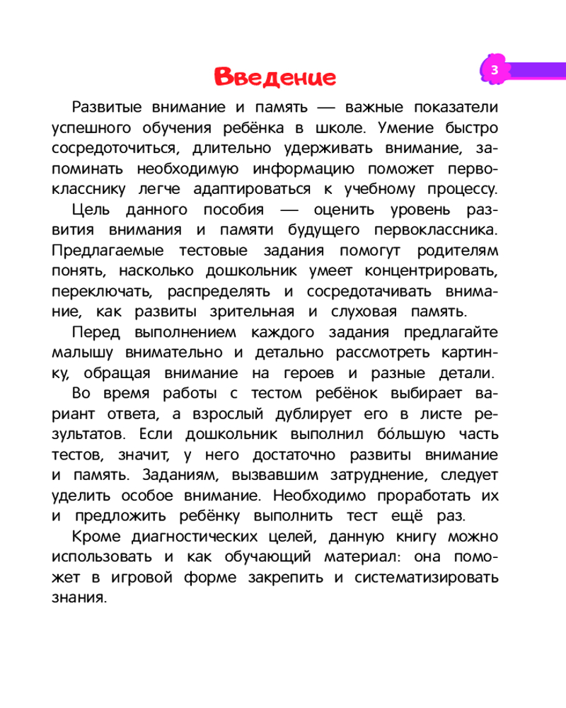 💳 Оплатить за товар можно при получении 🇰🇿 Есть бесплатная доставка по Казахстану от 1 дня 🎁 Копите бонусы с каждой покупки Цель книги, соответствующей ФГОС — оценить уровень развития внимания и памяти у будущего первоклассника. Умение быстро сосредоточиться на поставленной задаче, длительное время удерживать внимание, быстро запоминать необходимую информацию поможет ребенку легче адаптироваться к учебному процессу. |