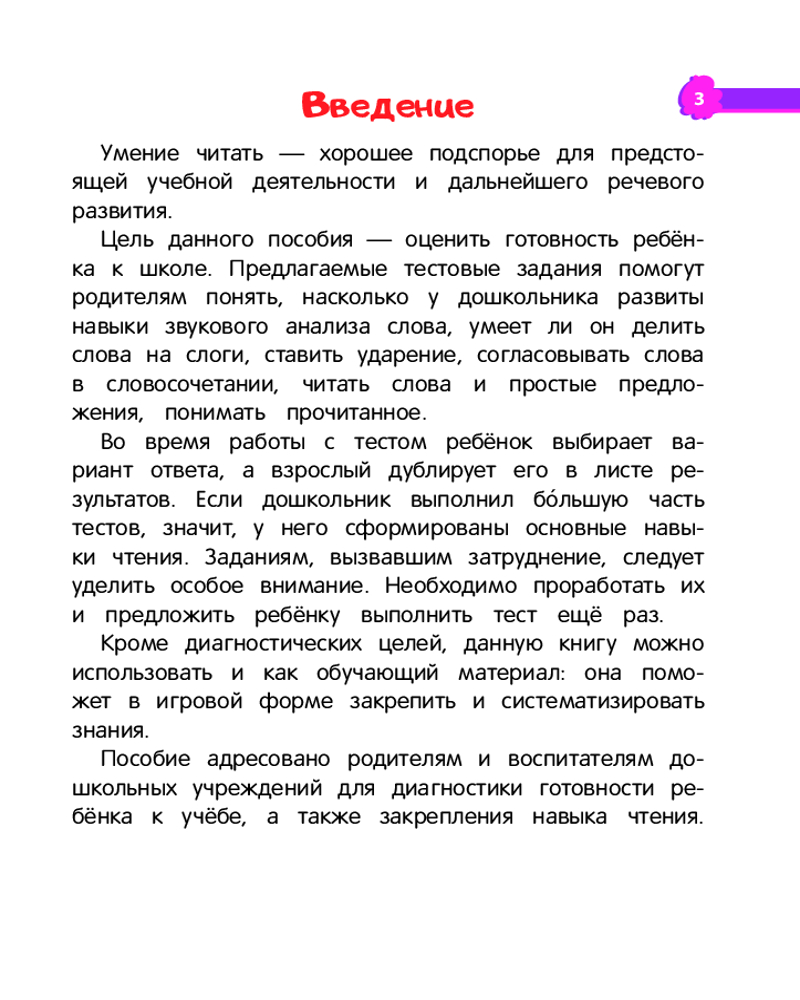 💳 Оплатить за товар можно при получении 🇰🇿 Есть бесплатная доставка по Казахстану от 1 дня 🎁 Копите бонусы с каждой покупки Умение читать — хорошее подспорье для предстоящей учебной деятельности и дальнейшего речевого развития. Ребенок сразу почувствует уверенность в своих силах и будет ходить в школу с удовольствием. Предлагаемые тестовые задания помогут родителям понять, насколько у дошкольника развиты навыки звукового анализа слова, умеет ли он делить слова на слоги, ставить ударение, согласовывать слова в словосочетании, читать слова и простые предложения, понимать прочитанное. После выполнения теста ребенку необходимо выбрать правильный вариант ответа, а взрослому внести его в лист результатов. Если большая часть тестов сделана верно, значит, у ребенка хорошо развиты внимание и память, а если возникнут трудности, следует еще раз проработать с ним сложные темы и предложить пройти тест еще раз. |