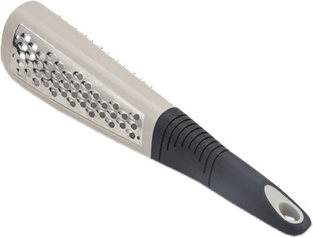 Лезвия из нержавеющей стали, подходящие для контакта с пищевыми продуктами, прочная пластиковая рамка и эргономичная нескользящая ручка soft touch, обеспечивающая стабильное и безопасное обращение. Элегантный изогнутый дизайн и практичный размер для удобного хранения даже в ящике. Он имеет 2 поверхности, для грубого или тонкого трения , а практичное отверстие на краю позволяет повесить его.