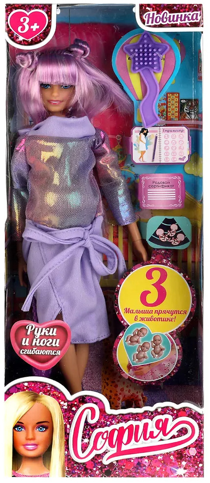 💳 Оплатить за товар можно при получении 🇰🇿 Есть бесплатная доставка по Казахстану от 1 дня 🎁 Копите бонусы с каждой покупки Серия: София и Алекс Будущая мама София одета в стильный наряд в сиреневых тонах с верхом из переливающейся ткани. Образ куколки дополняют модные крупные серьги, колье и элегантная сумочка. Одежду и аксессуары легко снять и надеть. С такой модной куклой девочке будет интересно и весело играть: благодаря тому, что руки и ноги куклы подвижны, им можно придать любое положение. У Софии длинные красивые волосы, которые хозяйка куклы сможет заплетать в разные причёски. Детально проработанный дизайн игрушки вдохновит девочку на новые игровые сюжеты. |