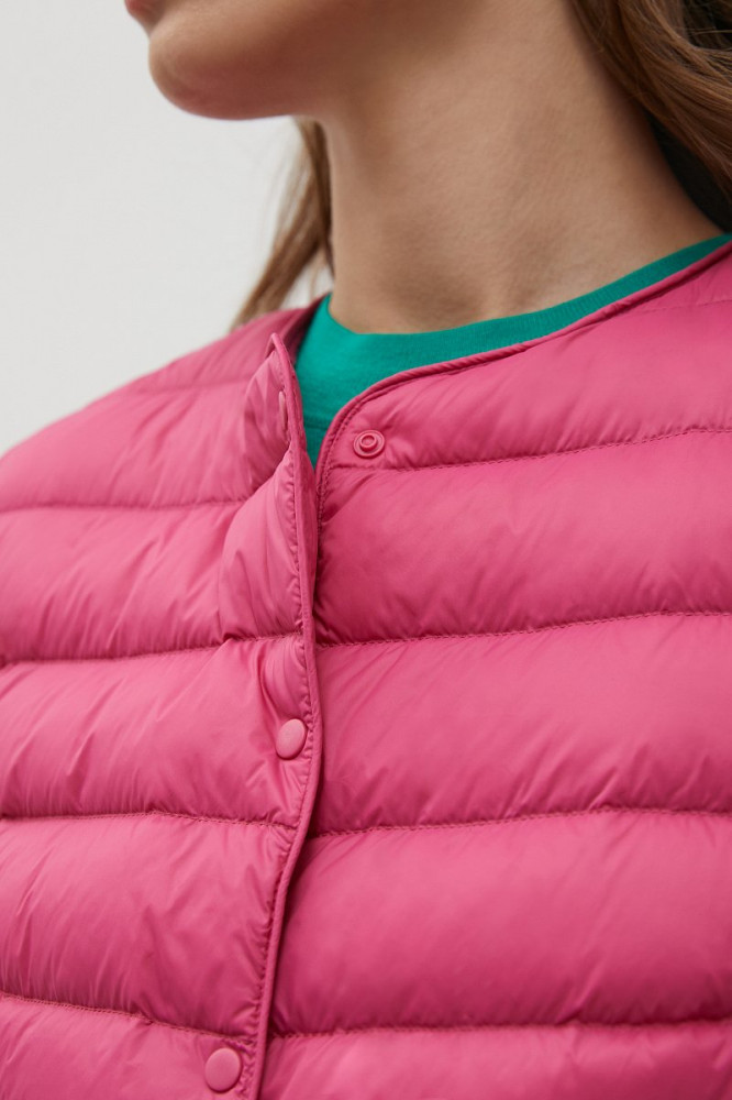 Стеганый пуховик на тонком и легком утеплителе. За тепло отвечает наполнитель из натурального отборного утиного пуха. Изделие выполнено из тонкой ткани приятной на ощупь. Благодаря специальной пропитке пуховик обладает легкими водоотталкивающими свойствами. Не требует особого ухода, прекрасно сохраняет форму. Стильная модель дополнена карманами и застежкой на кнопки. Универсальная куртка проста в уходе и прекрасно сохраняет форму.