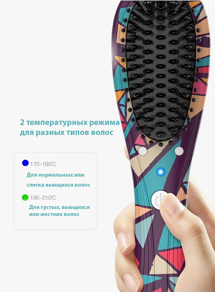 Керамическая расческа выпрямитель для укладки. Стайлер нагревается в течение 8 секунд, передает тепло через постоянную температуру. Аккуратно расчесывает волосы и эффективно разглаживает вьющиеся. Работает от электросети. Интеллектуальная система контроля: Нагревательный элемент PTC, который является безопасным и надежным, имеет автоматическую постоянную температуру на протяжении всего процесса, чтобы предотвратить повреждение волос. Время стайлинга занимает всего 3 минуты. Этот электростайлер для волос станет незаменимым бьюти-помощником в создании вашей естественной укладки. Как локонов, так и выпрямленных волос.