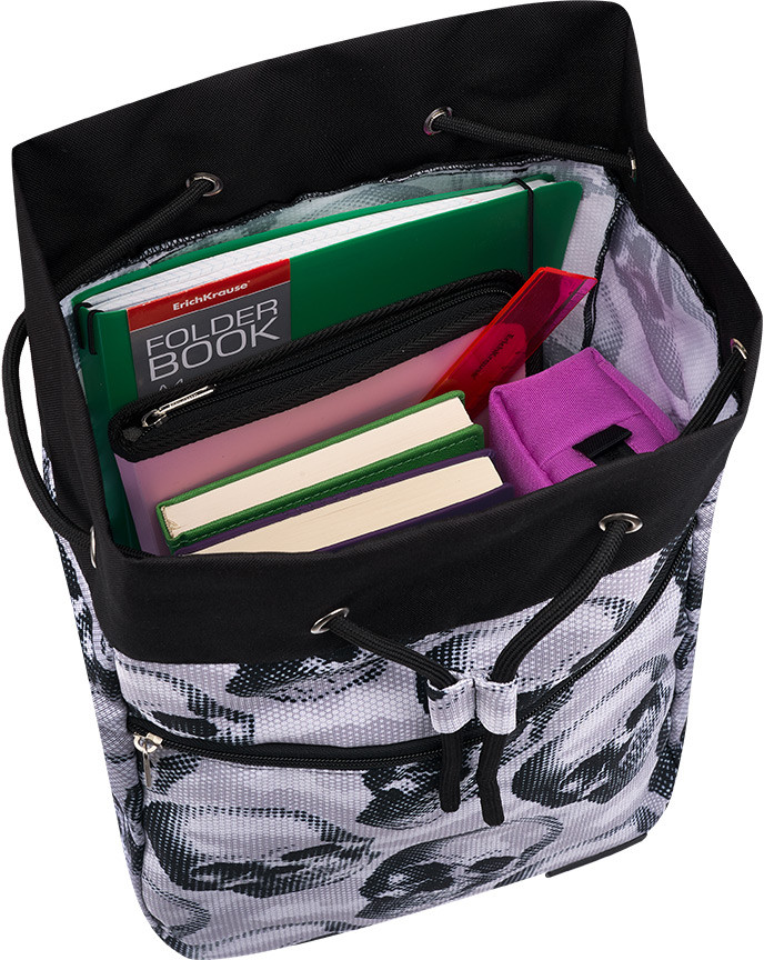 💳 Оплатить за товар можно при получении 🇰🇿 Есть бесплатная доставка по Казахстану от 1 дня 🎁 Копите бонусы с каждой покупки Серия: Pixel Skull Универсальная модель, затягивается на шнурке. Материал: износо- морозостойкий водоотталкивающий 100% полиэстер. Лямки с уплотнением для комфортного распределения нагрузки. Места крепления лямок и ручки усилены дополнительными швами. Внутри одно вместительное отделение, снаружи большой передний карман на молнии. Надежная молния с мягким ходом оснащена бегунком с логотипом «ErichKrause». |