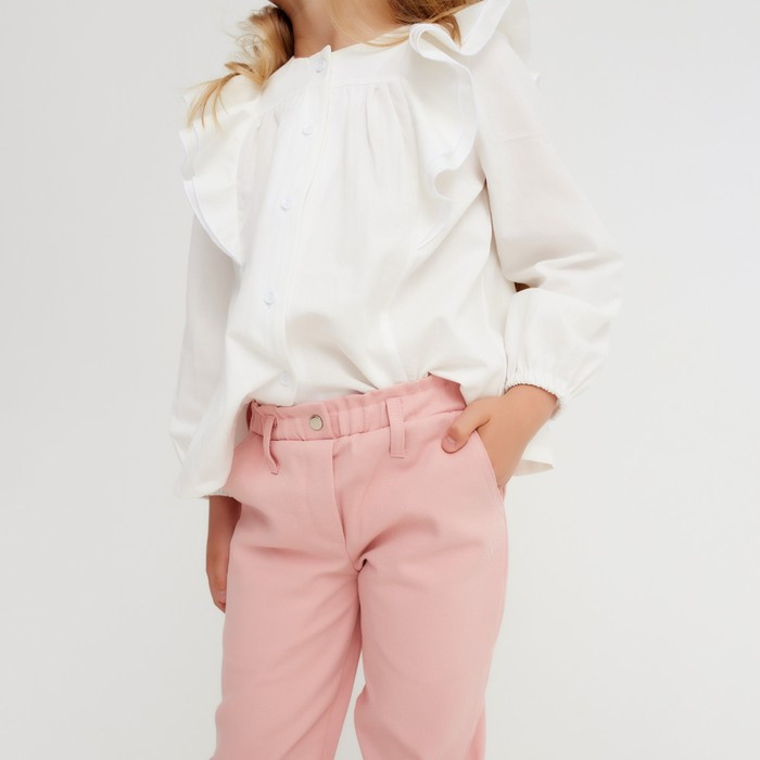 Стильные джинсовые брюки для девочек. Выполнены из хлопка. Силуэт прямой. В поясе — молния-застежка. Универсальные джинсы!