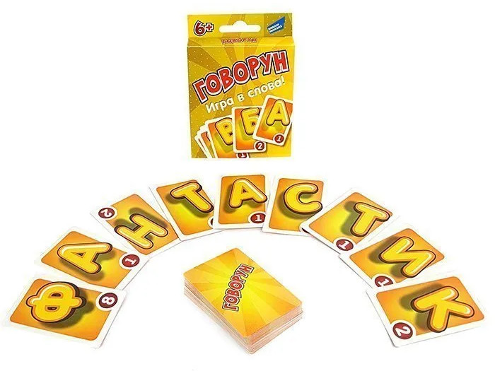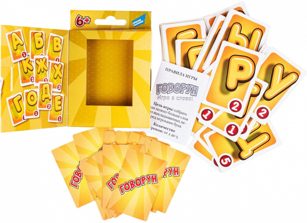 Dream makers Игра настольная «Говорун. New»В данный момент этот товар отсутствует в продаже. Возможно, у нас найдется аналогичный или похожий товар здесь. «Говорун» — это игра в слова! Игроки ходят поочерёдно, выкладывая по одной карточке с буквой. Как только кто-то замечает, что из выложенных карт можно составить слово, он его называет и забирает себе. Разные буквы приносят разное количество очков. Чем сложнее слово, тем больше шансов на победу! Игра развивает ассоциативные навыки и расширяет словарный запас. |