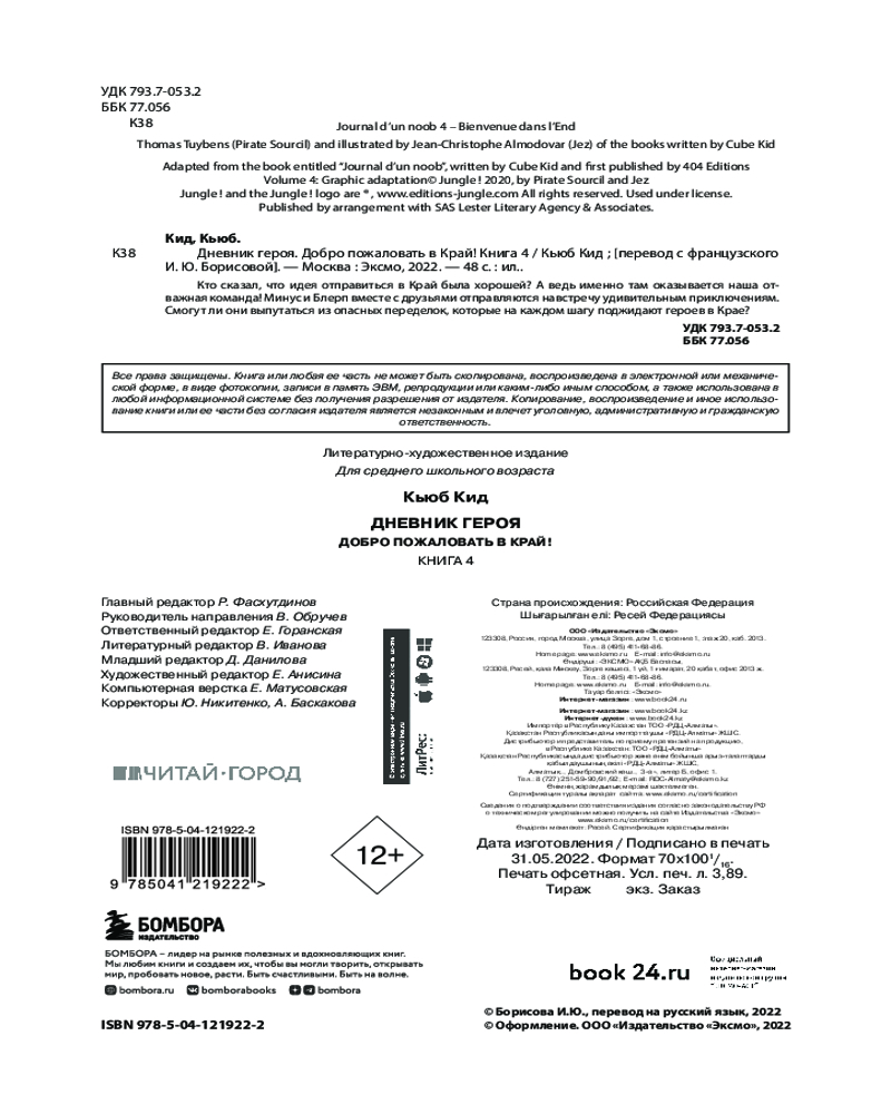 💳 Оплатить за товар можно при получении 🇰🇿 Есть бесплатная доставка по Казахстану от 1 дня 🎁 Копите бонусы с каждой покупки Минус, Блерп, Багель, Марго и Альберик решают вместе отправиться в Край. Недавний враг, Альберик, оказался давним другом Марго и хорошим соратником для всей команды. По дороге Блерп попадает в переделку, и именно Альберик, хотя он и недолюбливает зомби-мальчика, приходит на помощь. Наконец, друзья на месте и открыли портал. Вот только Марго и ее Альберик задумали неладное... Что же будет дальше с нашей отважной командой? |