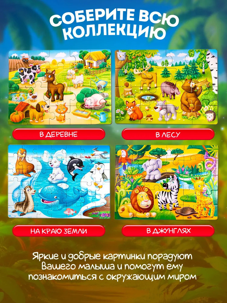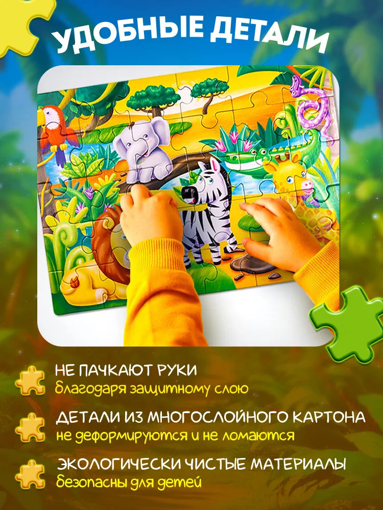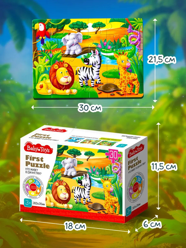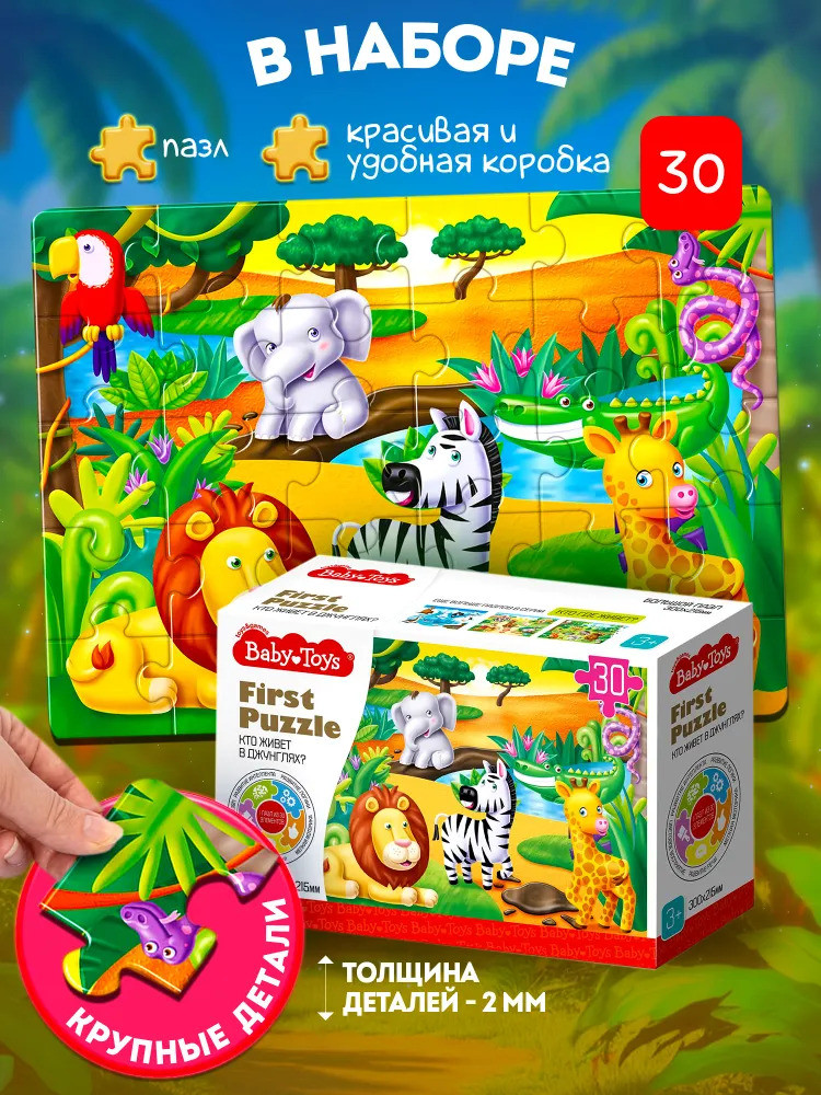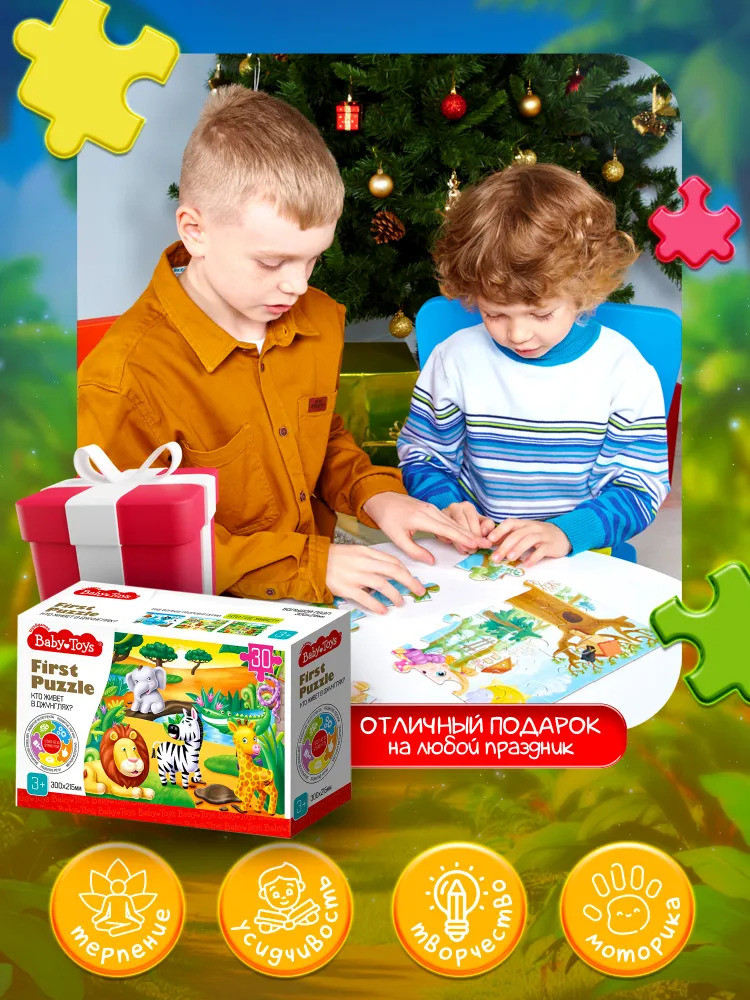 Baby Toys Пазл «Кто живет в джунглях»-25% +39