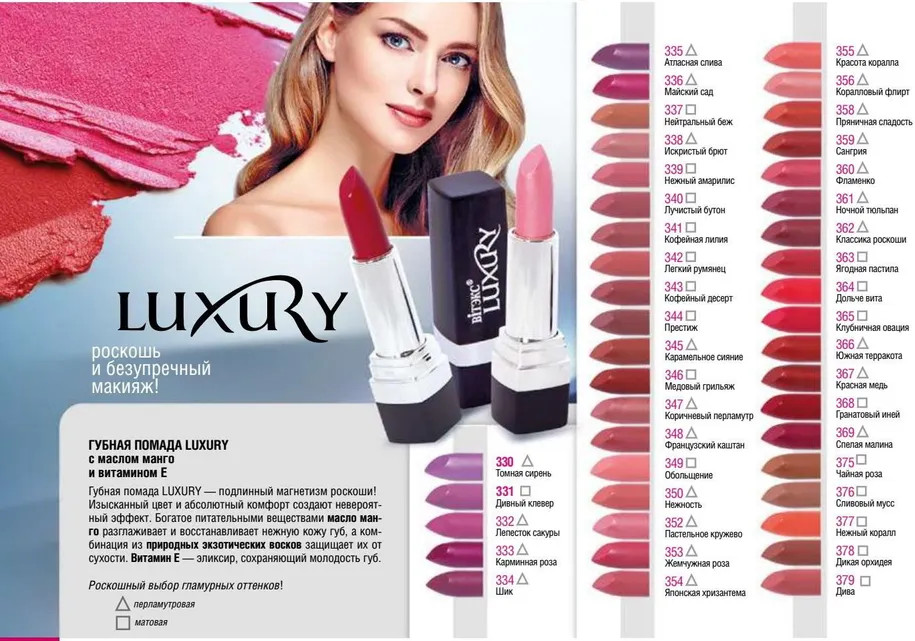 Помада для губ для вечернего макияжаПомада для губ атласнаяПомада для губ водостойкаяСуперстойкая матовая помадаПомада для губ сатиноваяПомада для губ питательнаяПомада для губ гипоаллергеннаяПомада-карандаш Golden RoseПомада-стик для губПомада для губ в стикеПомада для губ коричневаяПерламутровая помада Помада для губ RUTAПомада для губ кремоваяПомада для губ краснаяПомада для губ стойкаяПомада для губ глянцеваяПомада LuxVisageПомада RELOUISПомада-бальзам для губПомада для губ увлажняющаяПомада для губ в блескеПомада для губ розоваяПомада для губ жидкаяПомада для губ матоваяПомады для губ